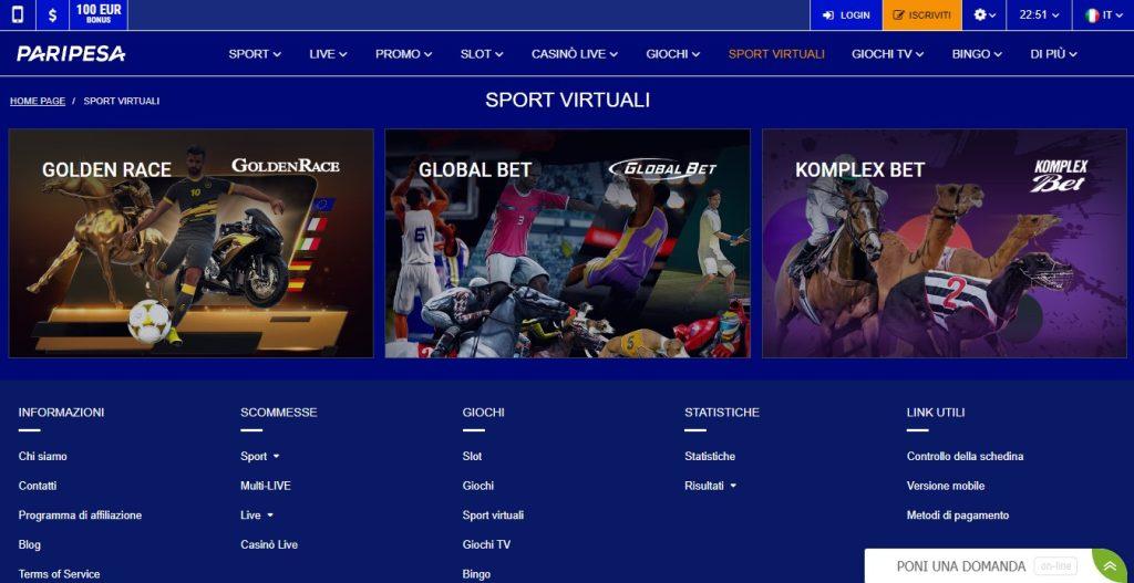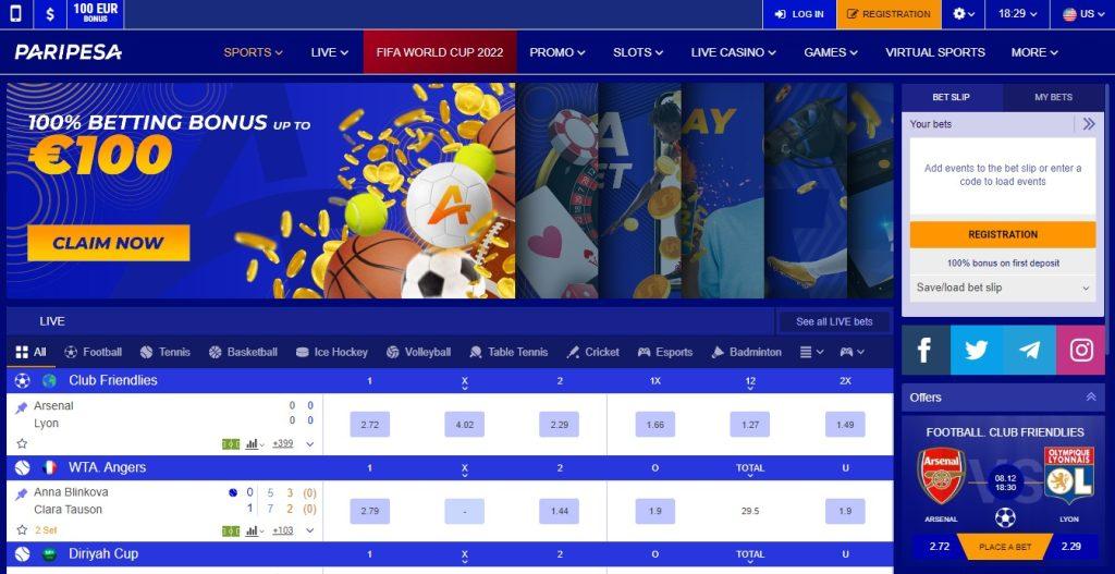 A Paripesa é uma casa de apostas e casino online moderna e inovadora, destacando-se pela sua vasta gama de conteúdos, incluindo: casino, casino ao vivo, jogos de mesa, slots, bingo, apostas desportivas e jogos virtuais.